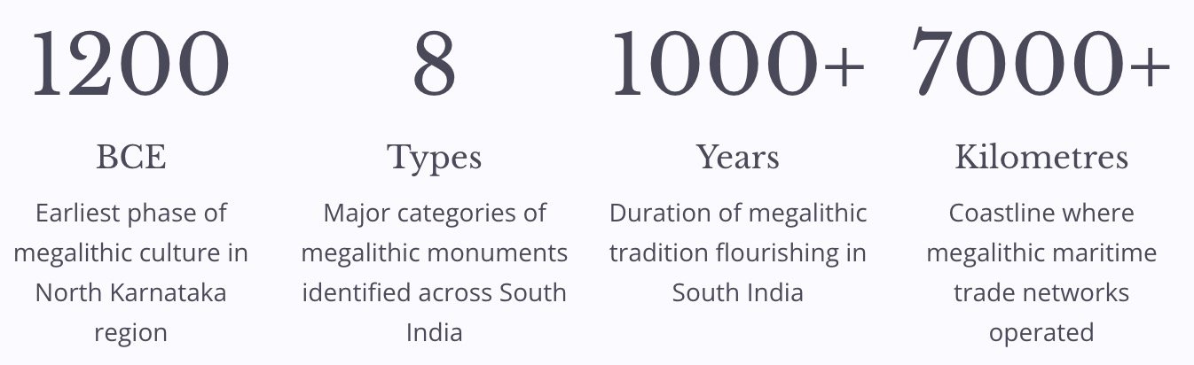 Megalithic culture represents a foundational phase of peninsular India's history through multiple transformative developments. It marked the beginning of sedentary life based on combined agriculture, hunting, fishing, and animal husbandry with evidence of craft traditions suggesting permanent settlements. The widespread use of iron revolutionised tool-making, weaponry, and agricultural implements, fundamentally transforming economic life. Well-developed specialised craft traditions including diverse pottery types, bead making, and sophisticated metallurgy emerged during this period.
