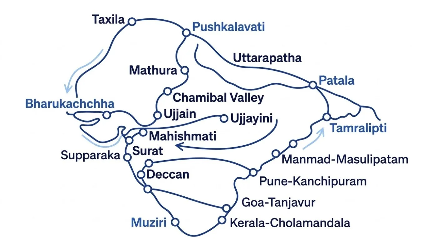 Ports were not mere points of embarkation. The Jatakas describe them as important manufacturing centres in their own right, or as nodes closely connected to productive hinterlands. This integration of port and hinterland was a key structural feature of ancient Indian maritime commerce.