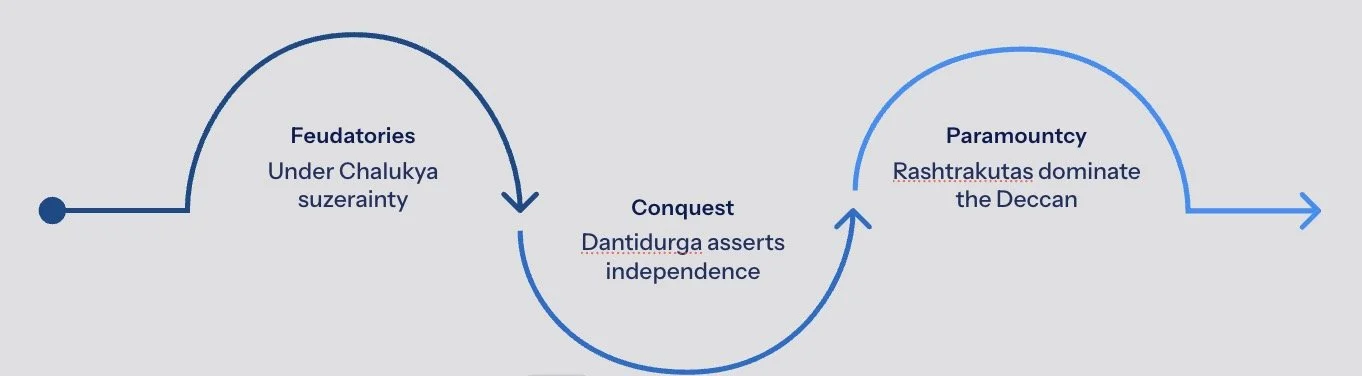 From their capital at Manyakheta, the Rashtrakutas controlled not only the Deccan heartland but also large stretches of the western coast, enabling them to dominate trade routes connecting India with West Asia. Their story is one of military ambition, cultural patronage, and eventual decline — a narrative that mirrors the complexities of Indian polity in the early medieval period.