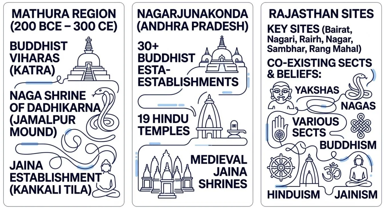 These regional snapshots reveal that the religious map of post-Mauryan India was not a mosaic of exclusive territories but a complex, layered palimpsest where multiple traditions overlapped in the same physical spaces, often peacefully, occasionally in rivalry.