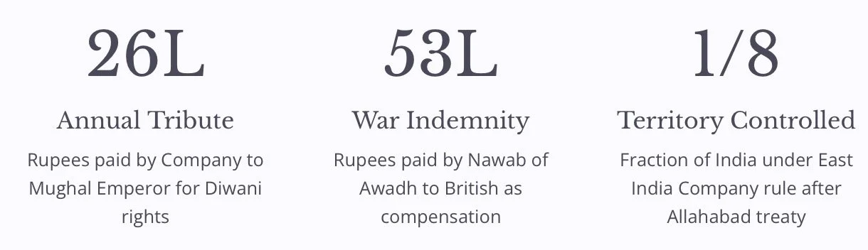 War Indemnity: The Nawab of Awadh paid 53 lakhs rupees of war indemnity to the British.