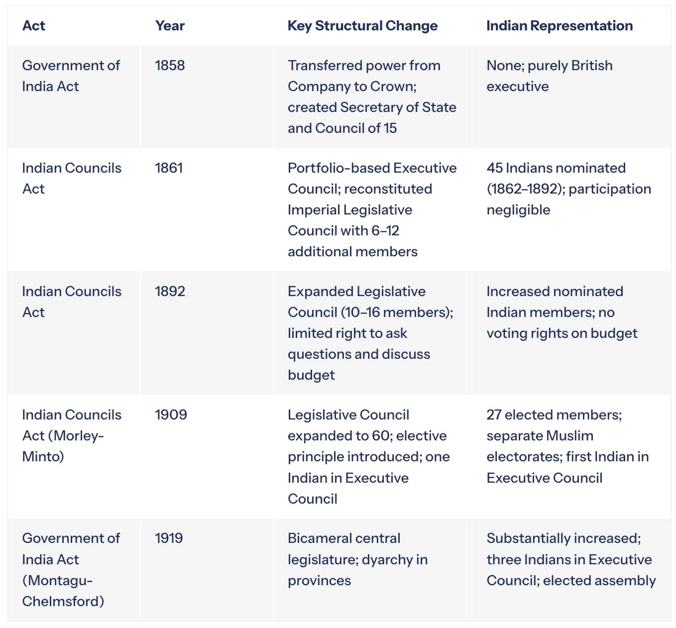 For students and general readers approaching the constitutional history of nineteenth-century India, the Indian Councils Acts of 1861 and 1892 offer an essential foundation. The following points represent the core conclusions of this study.