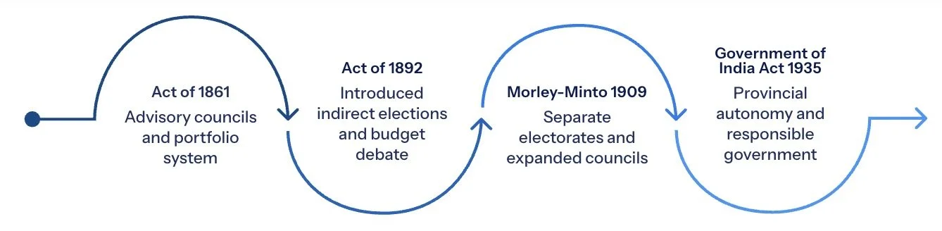 The Indian Councils Acts of 1861 and 1892 are best understood not in isolation but as the opening chapters in a long constitutional narrative that would take over seven decades to reach its provisional conclusion in the Government of India Act, 1935. Each reform measure was the product of the same fundamental dynamic: Indian political agitation, British reluctance, partial concession, renewed dissatisfaction, and further agitation.