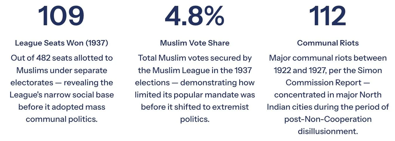 The introduction of separate electorates through the Morley-Minto Reforms of 1907 had already established the institutional infrastructure for communal politics. Under this system, Muslim voters were placed in constituencies from which only Muslims could stand as candidates and for which only Muslims could vote. This arrangement systematically trained generations of voters to think communally, to evaluate political progress in communal terms, and to express every socio-economic grievance through the idiom of communal power and communal injury.