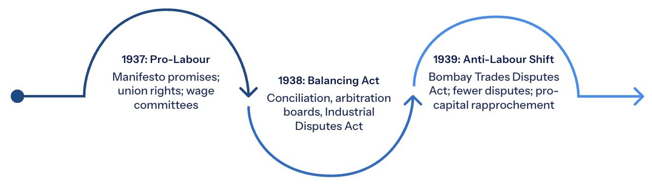 The Congress Ministries inherited contradictory obligations on the labour question: their election manifesto had promised workers the right to organise and strike, yet their dependence on capitalist funding and their multi-class coalition strategy required them to mediate between capital and labour rather than champion one against the other.