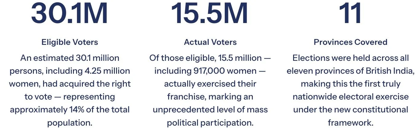 The provincial elections held in the winter of 1936–37 were the most expansive democratic exercise India had witnessed until that point. Mandated by the Government of India Act, 1935, they spanned eleven provinces across British India — Madras, Central Provinces, Bihar, Orissa, United Provinces, Bombay Presidency, Assam, NWFP, Bengal, Punjab, and Sindh.